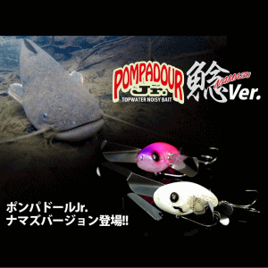 発売当初から数々のナマズアングラーによって実力を証明されている"ポンパドールJr" にナマズ専用カスタムモデルが登場。オリジナルモデルより大きなサイズのリアプロップを採用したことで、より力強く水を撹拌し激しいサウンドを発生。ボディ内部にはスチールボールが内蔵さており、大音量で力強いアピ-ル力を誇ります。また、ダブルフックを採用したことで障害物が多いフィールドでもナマズゲームをより快適に行えます。カラーリングはナマズゲームをより楽しむことのできる視認性の良いカラーを採用。低速でも泳ぎ出しが良く、移動距離を抑えたアクションはストレートリトリーブだけでなく、ピンスポット攻略でも威力を発揮します。