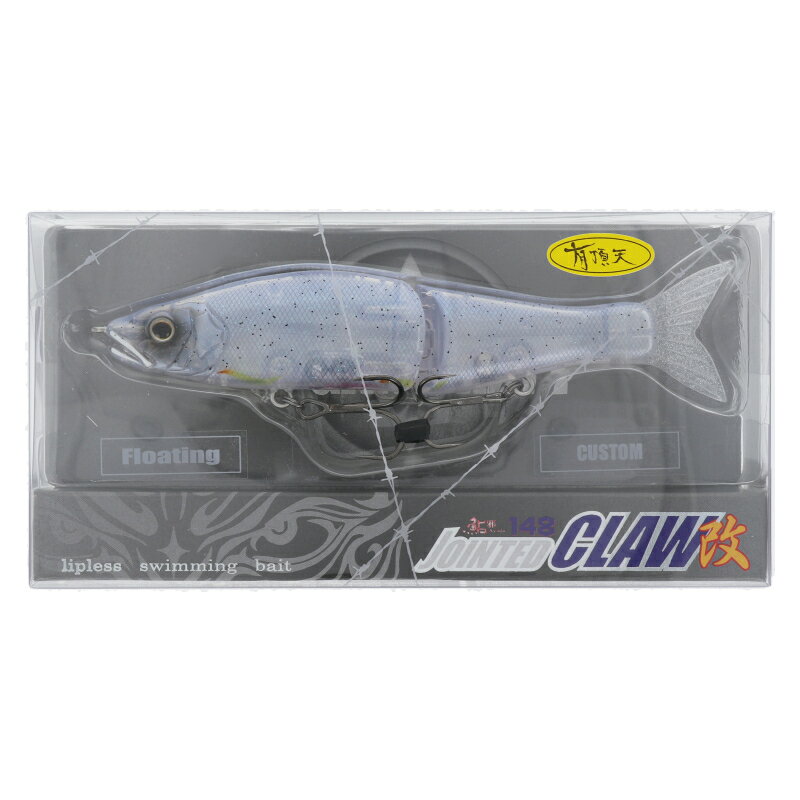 【アウトレット】【現品限り】についてのご注意事項●展示品の為、商品・パッケージにご利用に差し支えない程度のキズ・汚れ・色焼けなどがある場合がございます。ご注文順に商品を引当させて頂きます。商品の状態についてのお問い合わせやご要望にはご回答出来かねますのでご了承下さい。●パッケージ・保証書の無い商品もございます。●別注文との同梱・内容変更・キャンセル・お客様都合での返品交換はお受けできません。●【アウトレット】商品は今後入荷予定がなく売り尽し価格で販売している商品です。●【現品限り】は今後の入荷予定がない商品です。●商品名に【同梱不可】【他商品同時注文不可】と記載されている商品は別倉庫から発送となるため同梱できません。システム上、同時注文が可能ですが、その際は勝手ながらキャンセルとさせて頂きます。キャンセルに伴い、各種キャンペーンの適用など取消となりますが、ご注文条件やポイントの補填・補償等は一切お受けできかねます。また、再度ご注文いただく際に完売となっている場合や、キャンペーン条件が異なる場合がございます。●掲載商品は複数サイトおよび実店舗で併売しています。ご注文タイミングにより欠品し、お取り寄せにお時間を頂く場合やお手配が出来ずにやむを得ずキャンセルさせて頂く場合がございます。●商品画像は代表画像です。仕様変更により商品スペックやパッケージなど変更となる場合がございます。仕様変更に伴う返品、商品交換の際の往復送料はお客様ご負担となります。●店舗都合・お客様都合に依らずご注文内容の修正やキャンセルを行った際に在庫なしとなる場合やポイント、クーポンなど各種キャンペーンが適用外となる場合がございます。大変恐縮ながらこのような場合でも補填などは出来かねますのでご了承下さい。【ガンクラフト/GAN CRAFT】(有頂天カラー)元祖S字系の血統。1年を通しビッグバスのベイトフィッシュとなるウグイを、ジョインテッドクローでリアルに表現しました。アクションは、オリジナルのジョインテッドクローが、ワイドでゆったりとしたS字を描いていたのに対し、ジョインテッドクロー改148は振り幅がやや狭くハイピッチなS字を描きます。これにより狭いポイントでもビッグバスに対して確実にアピールし、バイトに持ち込むことができます。また、オリジナルサイズよりもサイズをワンサイズ小さくしたことで、ビッグベイトにスレたポイントや野池でも絶大な威力を発揮します。[JOINTED CLAW]カラー:#T-08 トランスペアレント全長:148mm自重:34g自重(オンス):1.2oz classタイプ:フローティングフック:カルティバ ST-36BC(フロント)#2、(リア)#4釣り方、フィールド:淡水ルアー代表対象魚:ブラックバス TKM-16-02-13