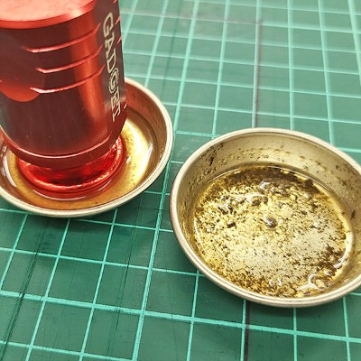 ※写真はパーツクリーナーの噴射で出たオイルやグリス、ゴミなど