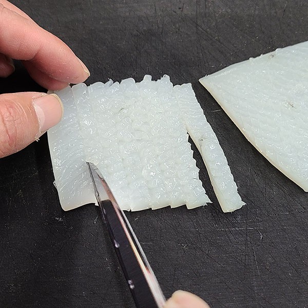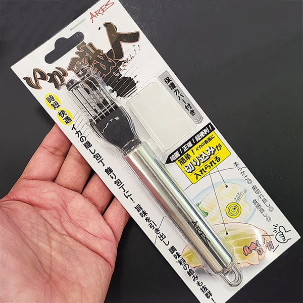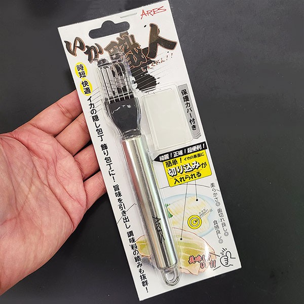 アオリイカ、大型の剣先、コウイカなど身の厚いイカに切り込み(隠し包丁・飾り包丁)を簡単に入れることのできるARES(アレス)の便利アイテム。