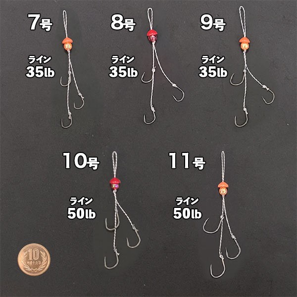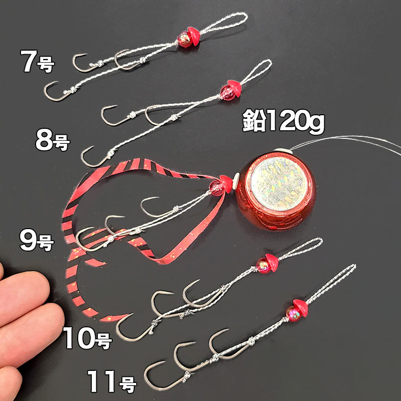 この鯛ラバアシストフックはフックサイズが5種類(7号・8号・9号・10号・11号)あります。