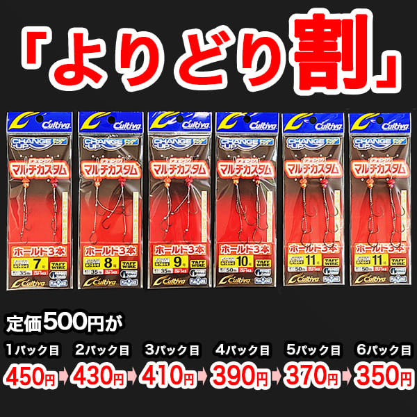 鯛ラバフック3本針 オーナー「チェンジアップマルチカスタム ホールド3本」