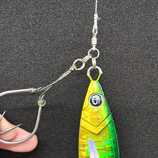 ジグスピンはジグ専用というわけではなく、片方の溶接リングが少し大きくなっています。大きな(強い)スプリットリングを使ったり、スプリットリングをアシストフックとジグと2個づけされる方におすすめです。