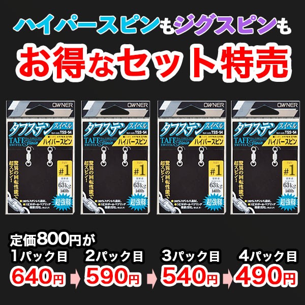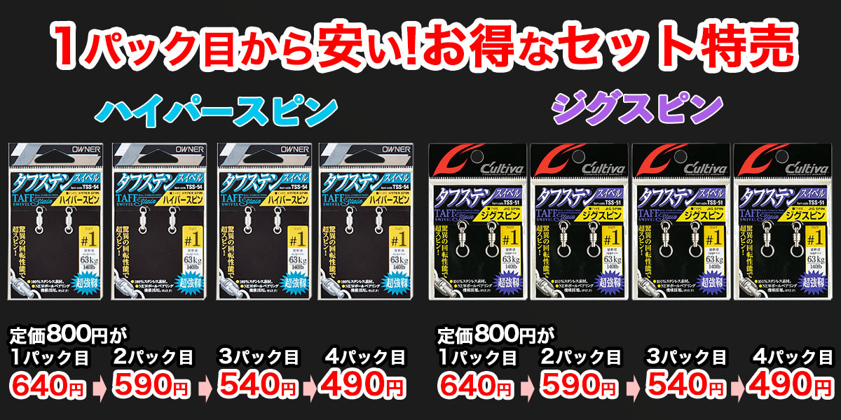 小さな最強のベアリングスイベル「ハイパースピン」と「ジグスピン」。予備も含めて大量に使いたい方の為にセット割で超お得に日本一の購入することが可能です♪