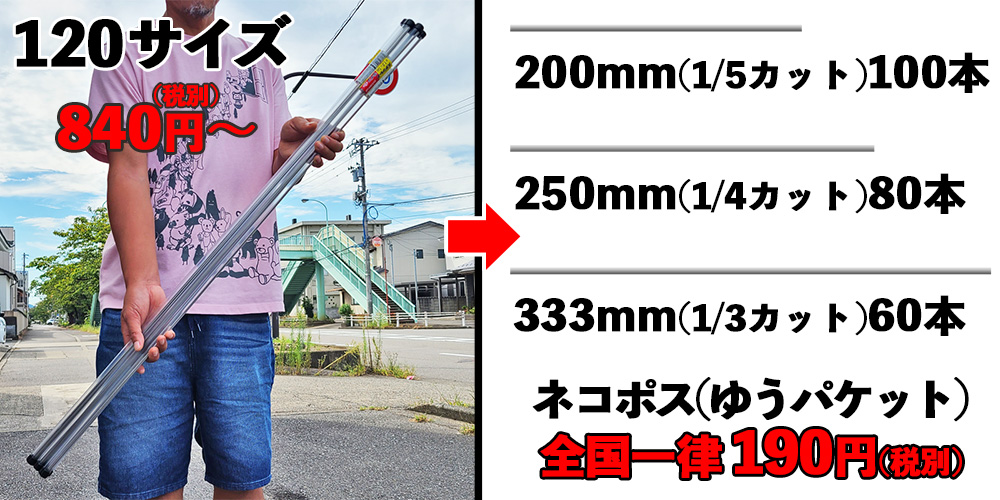 1m(20本)→333mm(1/3)60本 カット価格430円