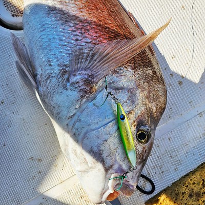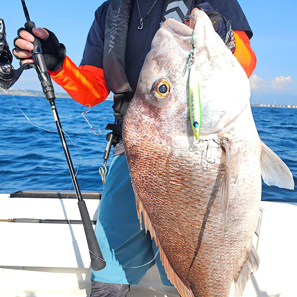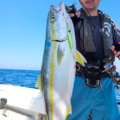 同船者にはいきなり、青物や80cmクラスの大型真鯛も、ハーフピッチジャークで使っていたら、ドーンと食ってきたそうです。