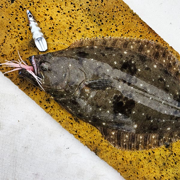 ヒラメといえばタコベイト!漁師もヒラメ釣で使う伝統的漁具です。イカヒラメというイカの泳がせでヒラメを狙う釣りがあるぐらい、ヒラメはイカで釣ることが可能。