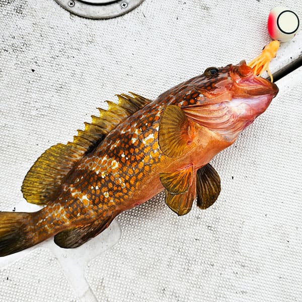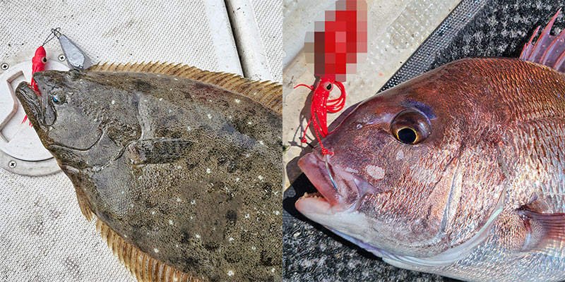 タコベイトは同様にイカを捕食している真鯛や青物、根魚も狙える、爆釣アイテムです♪