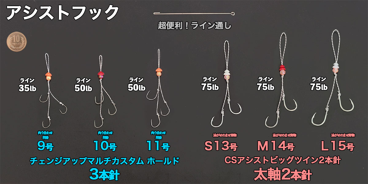 3サイズあり、おすすめのアシストフックもご紹介します♪