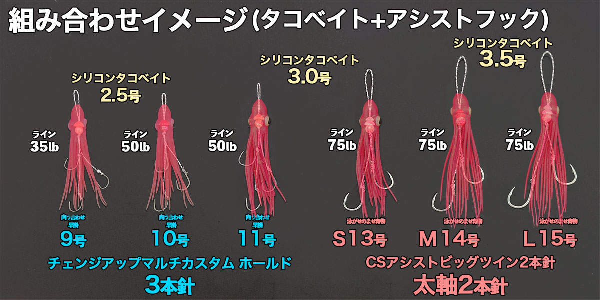 | タコベイトサイズ | おすすめアシストフック |
